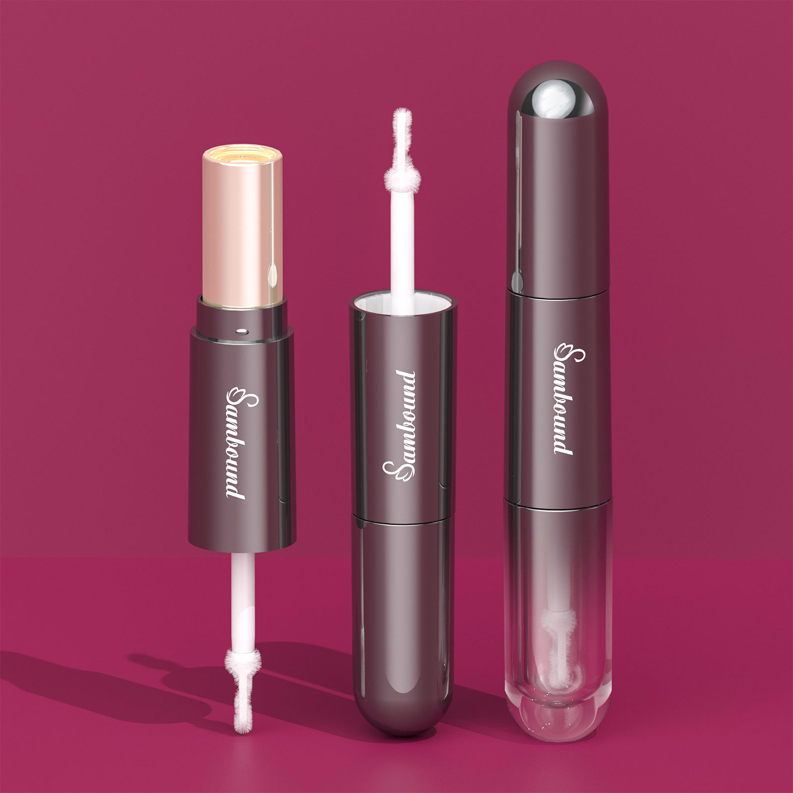 兩用口紅管包材,一頭可以裝固體口紅,一頭可以裝液體的唇油,一支包材多種用途